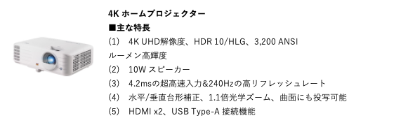 ViewSonic は、モバイルプロジェクターでありながら外付けスタンドを必要とせずに360度投影が可能なモバイルプロジェクター、4K超短焦点ホームプロジェクター、そして世界初のXBOX認定ゲーミングプロジェクターなど、幅広いプロジェクター製品ラインアップを揃っています。ViewSonicは革新的な技術により、家庭や個人用のプロジェクターエンターテイメント体験を向上させていきます。
