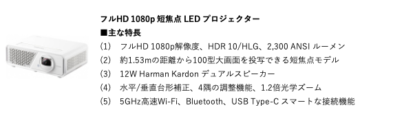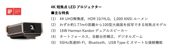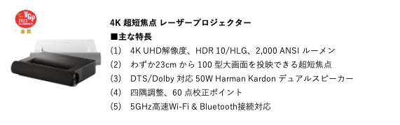 多目的プロジェクター(ライフスタイル/20万円以上30万円未満) |
