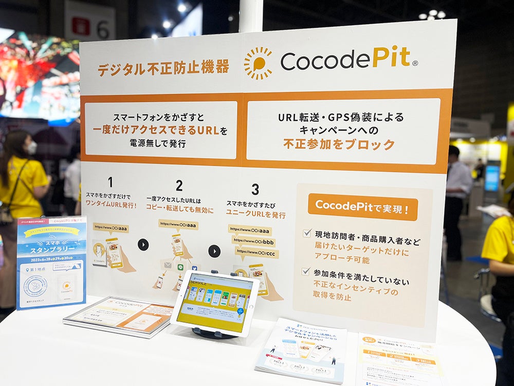 ブースでは、ワンタイムURL発行機「CocodePit」の特徴を図解したパネルに加え、廉価版である「CocodePitライト」を実際に利用した際のイメージが伝わるキャンペーンデモを2種類ご用意しました。