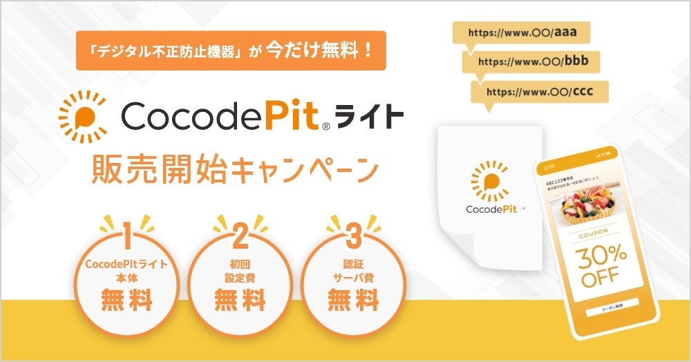 - 本体・初回設定費・認証サーバ費が今だけ無料!「CocodePitライト」販売開始キャンペーン