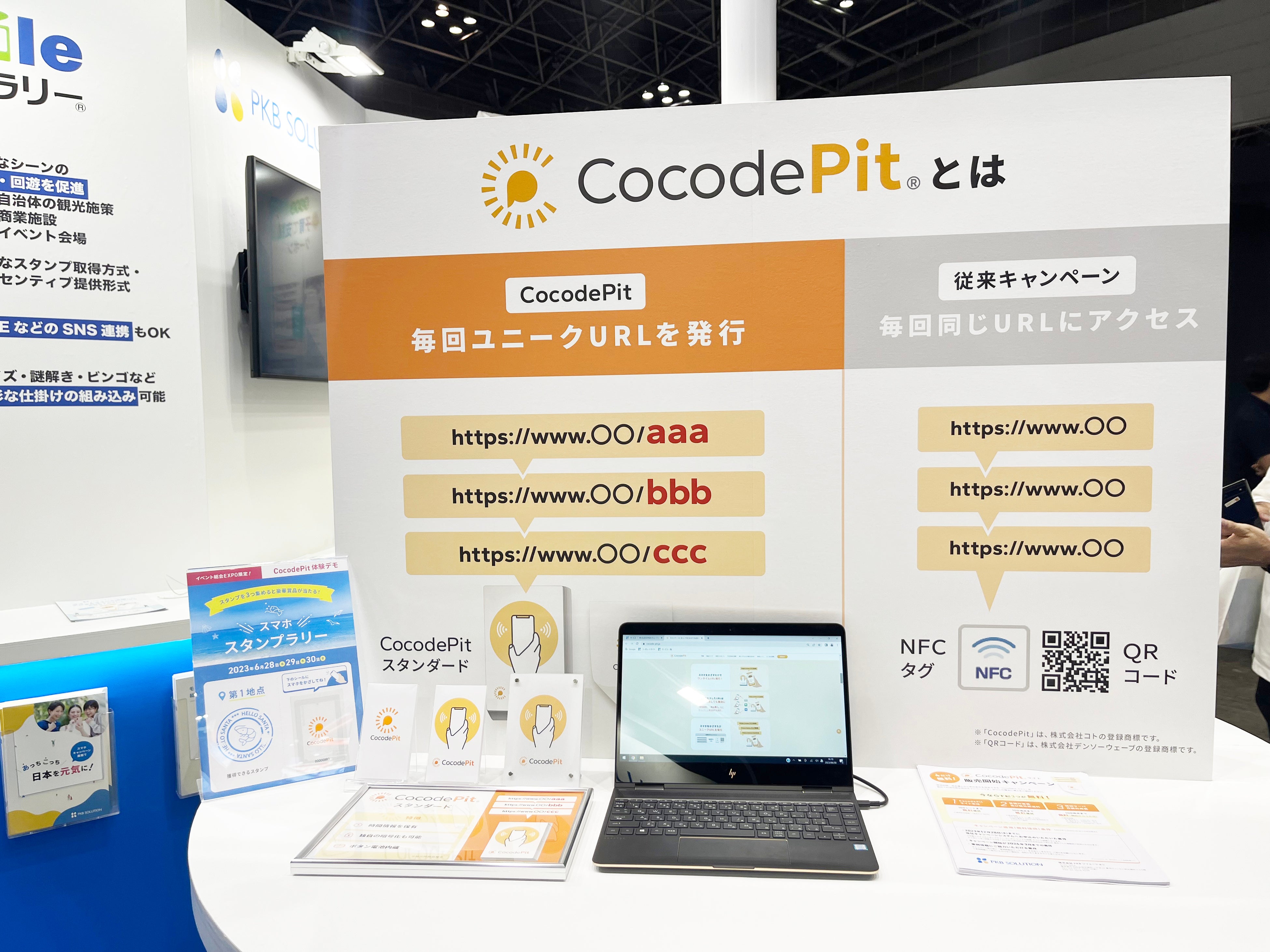 ブース内では、「CocodePitライト」を利用したデジタルスタンプラリーや、デジタルクーポンをデモで体験いただきました。安価で利便性の高い「CocodePitライト」を導入いただくことで、現地訪問・商品購入などターゲットを限定したいキャンペーンを、手軽に実施することが可能です。