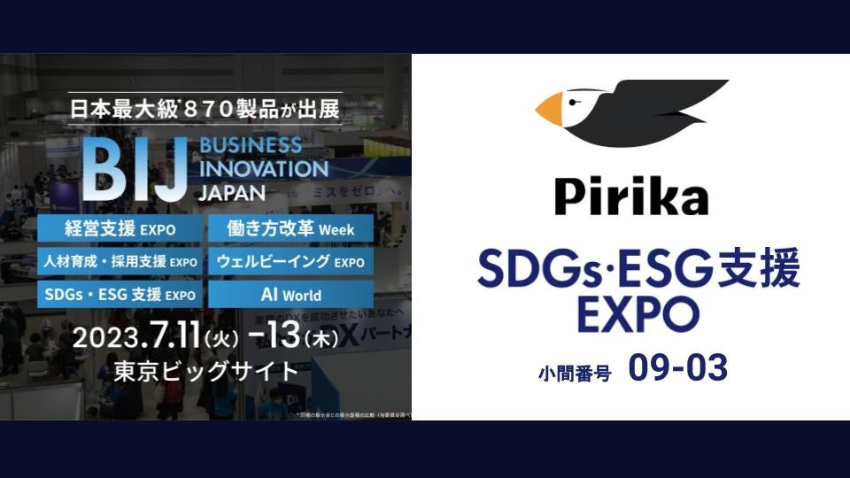 ピリカは、7月11日(火)〜 7月13日(木) の3日間、ビジネスイノベーション JAPAN 2023 夏 「SDGs・ESG支援EXPO」 に出展いたします。