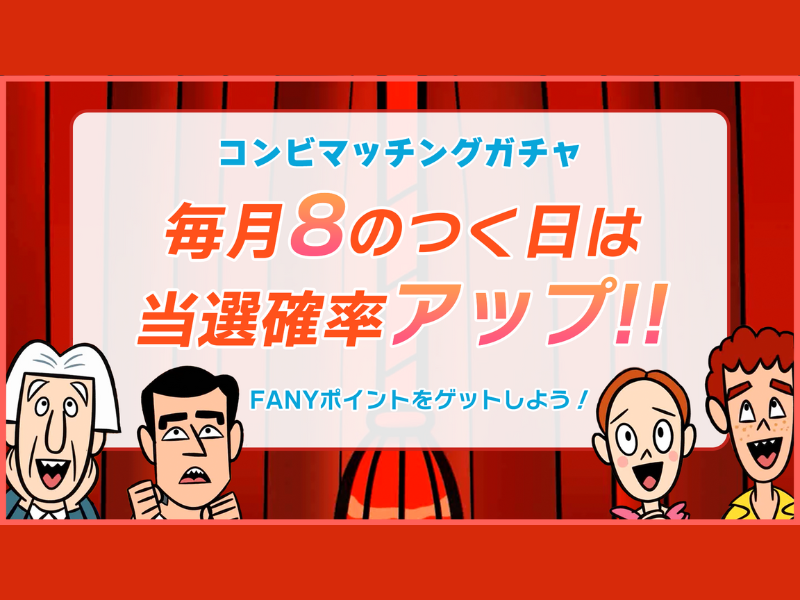 そんな“コンビマッチングガチャ”では、7月から毎月、アプリの発展を祈り、末広がりの縁起の良い「8」がつく日に、当たりの確率が上がるキャンペーンを始めます。毎日やってくださっている方はもちろん、リニューアルをご存知なかった方もこの機会にぜひ、新しくなった“ガチャ”で遊んでみてください!