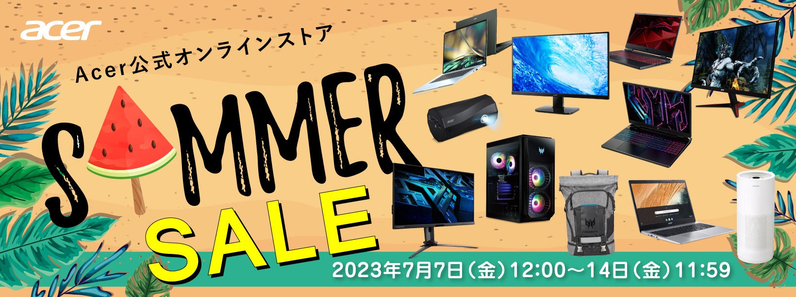日本エイサー株式会社(本社:東京都新宿区、代表取締役社長:ボブ・セン)は、同社のパソコン、モニター、プロジェクター、ガジェット、空調家電の各種製品を取り扱うAcer 公式オンラインストアにて、本日2023年7月7日(金)午後12:00~7月14日(金)午前11:59の期間、SUMMER SALE(サマーセール)を実施します。高性能モバイルノートパソコン、ゲーミングデスクトップパソコン/ノートパソコンやゲーミングモニター、さらに裸眼3D立体視テクノロジー搭載ゲーミングノートパソコンやプロジェクター、Acerpureブランドの空調家電など約70製品をラインアップ。最大50%オフ、数量限定で人気製品をお得にゲットするチャンスです。