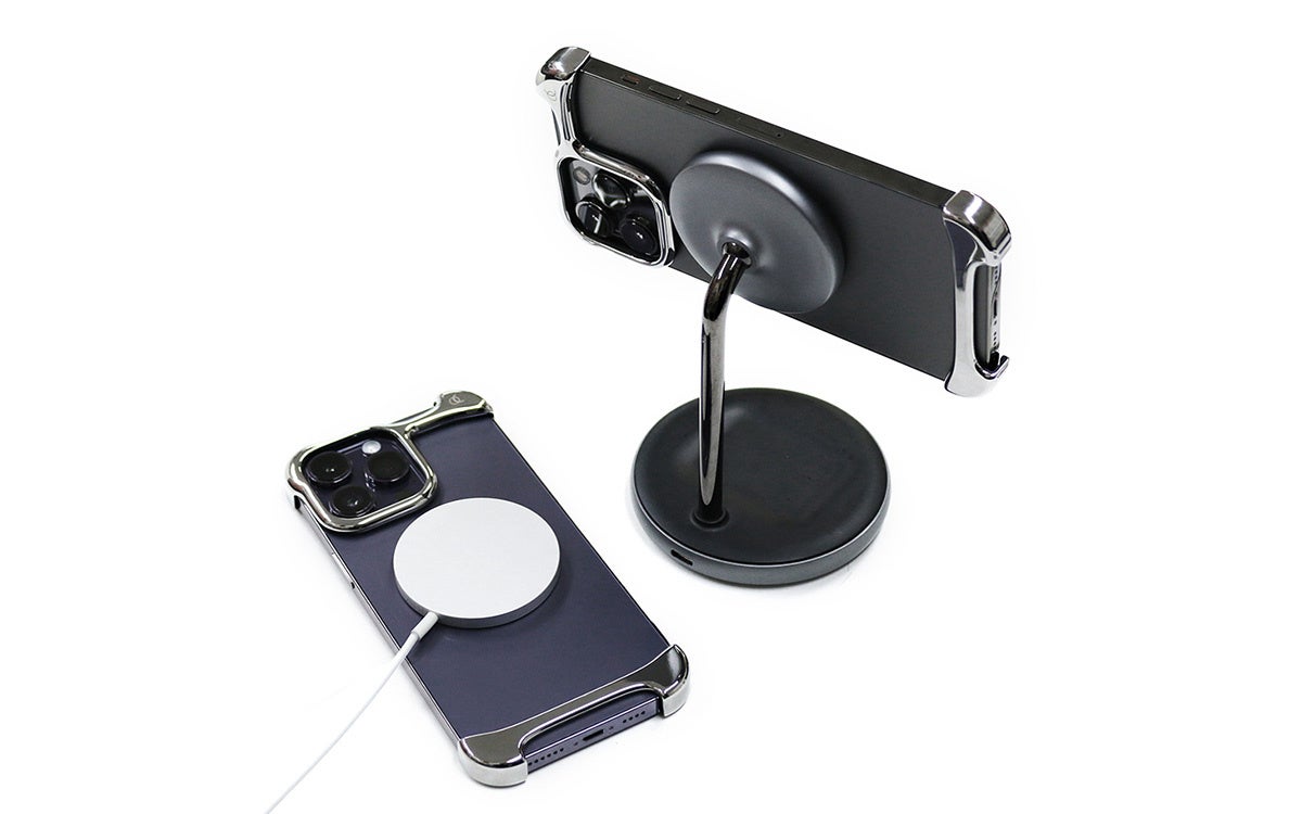 新モデルは、Arc史上で最も光り輝く表面加工が施されたミラーアルミニウムです。iPhoneのサイド部分のステンレススチールとマッチし、まるで一体化したように調和します。