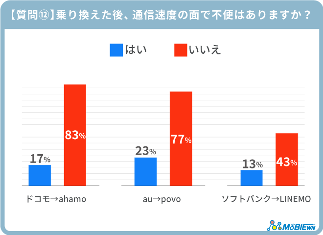 乗り換えによる通信速度の不便は大半が「ない」と回答