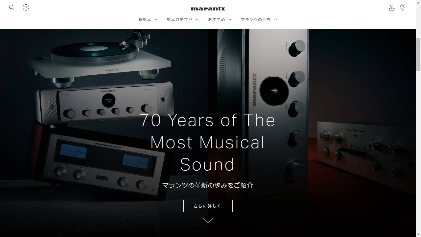 マランツは、70周年に合わせてウェブサイトのリニューアルを行いました。製品情報に加えて、私たちの歴史や数々の名機、ブランドにまつわるストーリーなど様々なコンテンツをお楽しみいただけます。