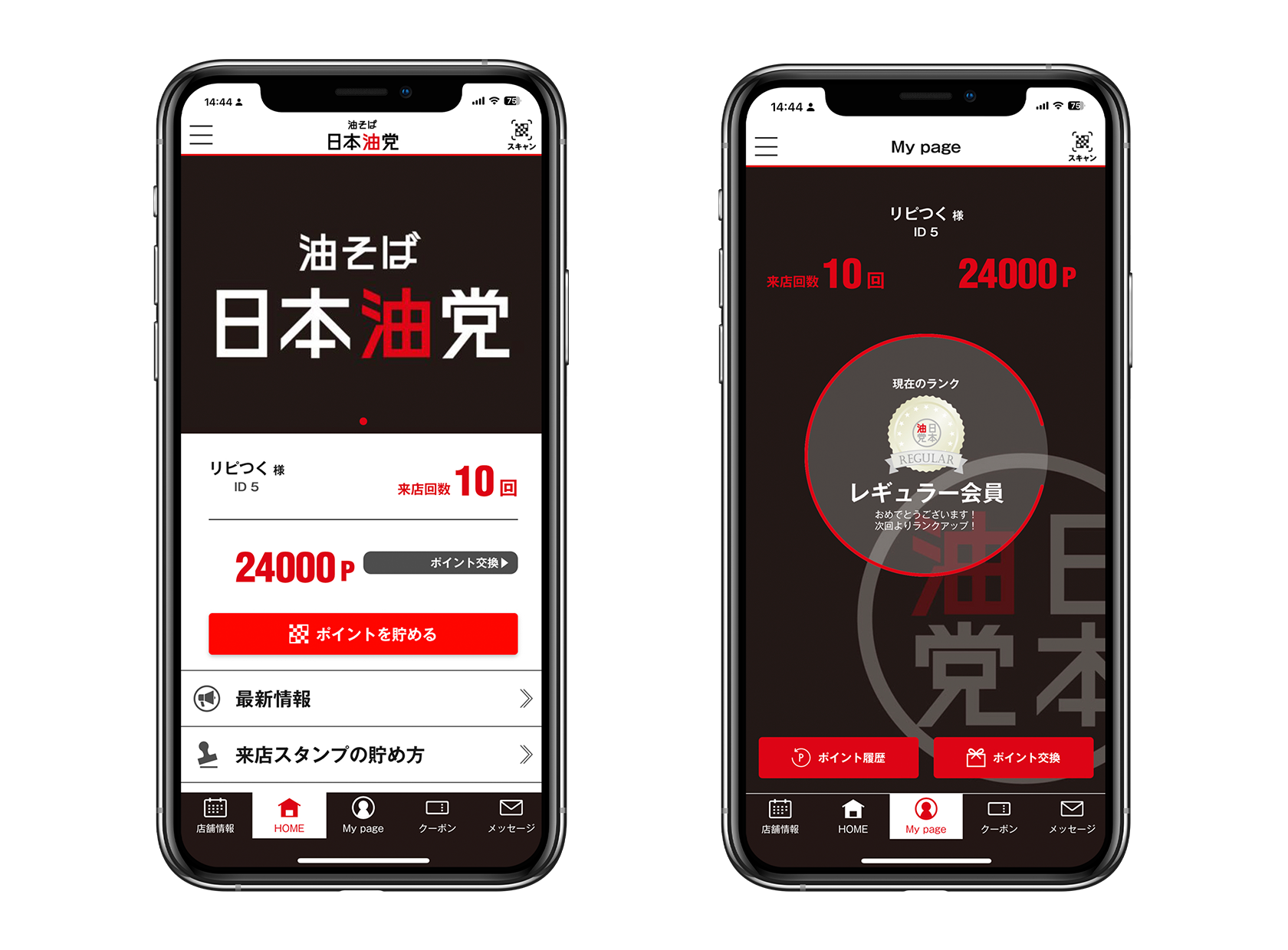 お客様は来店時に店頭にあるスマートフォン端末から来店スタンプを読み込む事で「来店回数、ランク、来店ポイント」などに応じて様々な特典を受ける事が可能になります。