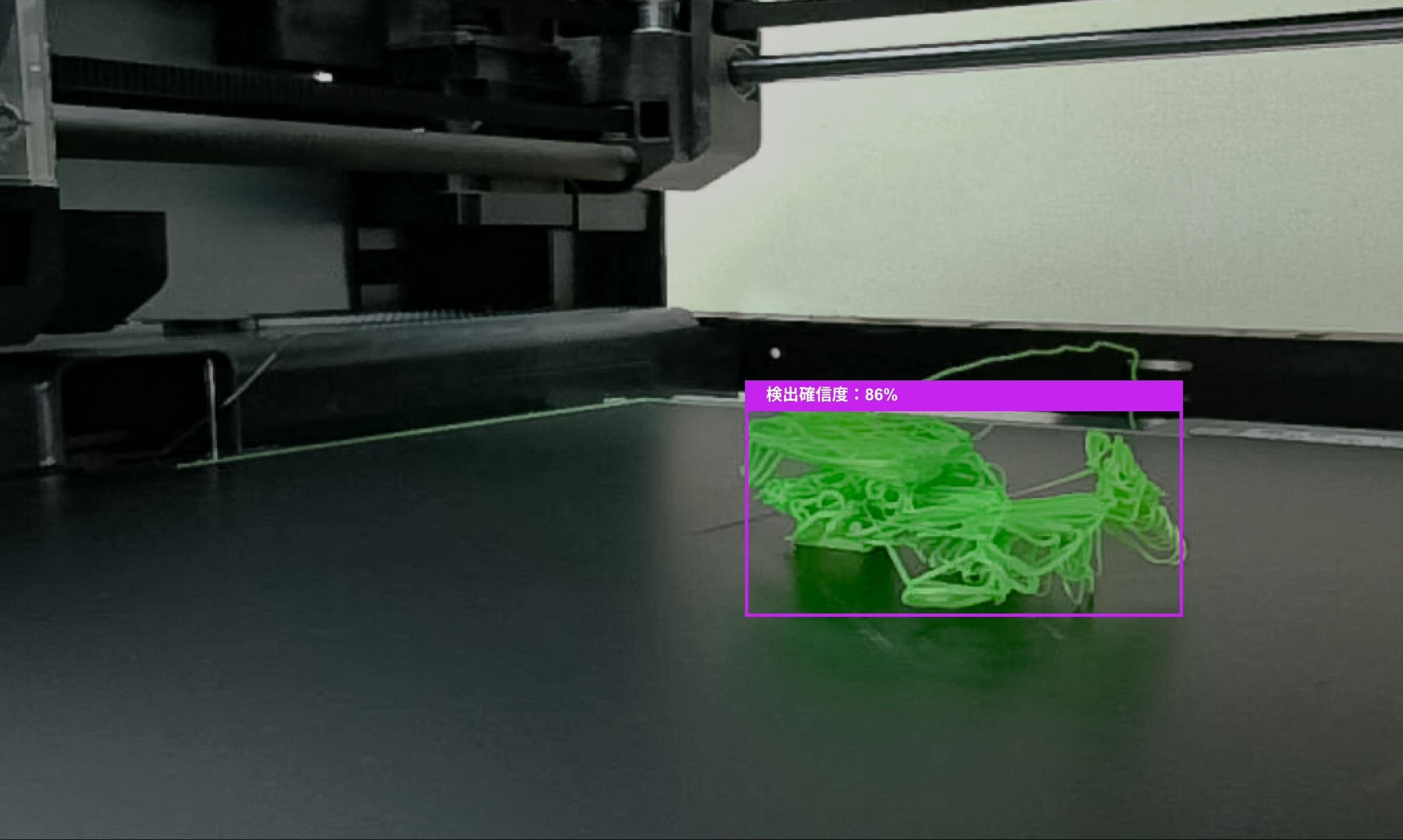 X1-Carbon Comboは、AIを活用して1層目の検査を行います。LiDAR(ライダー)センサーが1層目を精密にチェックし、その結果をAIが解析します。さらに、印刷中にスパゲッティ状のフィラメントが発生しないように常にAIが監視しています。この機能により、印刷の失敗を未然に防ぎ、安心して印刷を行うことができます。