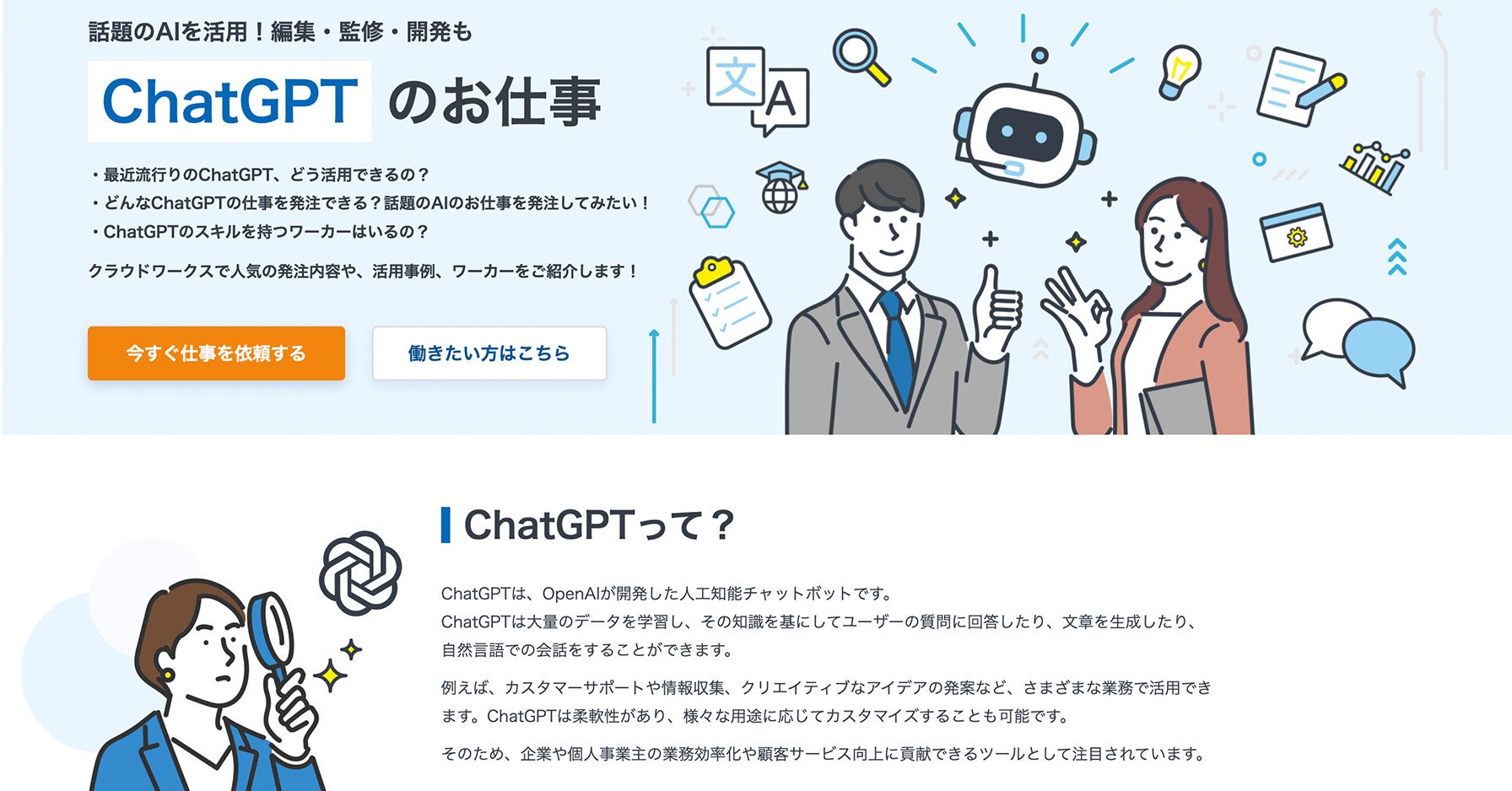 「ChatGPTのお仕事」特集:https://crowdworks.jp/static/lp/chatgpt_special_feature/