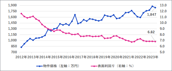 ※表面利回り・物件価格は期間中の平均 ※()内は前期比
