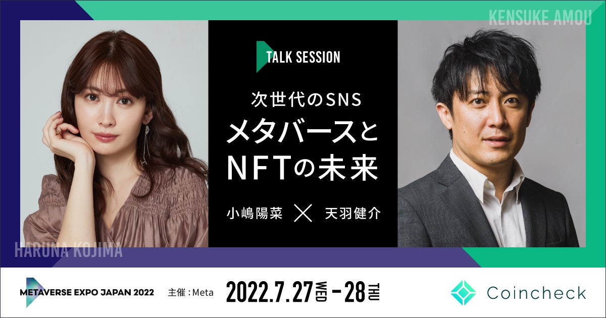 ライフスタイルブランド『Her lip to』を手掛ける小嶋陽菜氏とコインチェックのNFT・メタバース事業を統括する天羽健介が「次世代のSNS”メタバース”とNFTの未来」をテーマに、既存のSNSと次世代のSNSの違いやメタバースの可能性について議論します。また、現在両者が協業を進めているメタバース都市「Oasis」の取組みについても紹介します。なお、本セッションのアーカイブ動画はMETAVERSE EXPO JAPAN 2022公式サイトにて配信予定です。