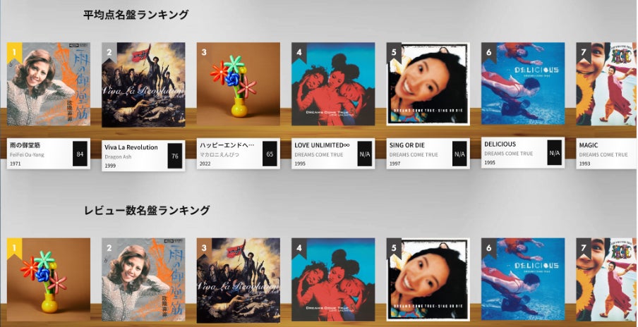 ランキング機能:評価やレビューに基づいてアーティストや曲のランキングを確認することができます。