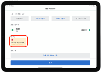 ・Shopify POSの会計終了画面をスクロールダウンし、アプリの項目に表示されるPie VAT アプリのボタンをタップ