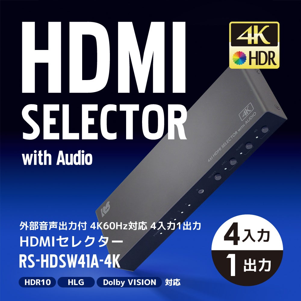 ●4K60Hz対応 外部音声出力付 4入力1出力 HDMIセレクター RS-HDSW41A-4K