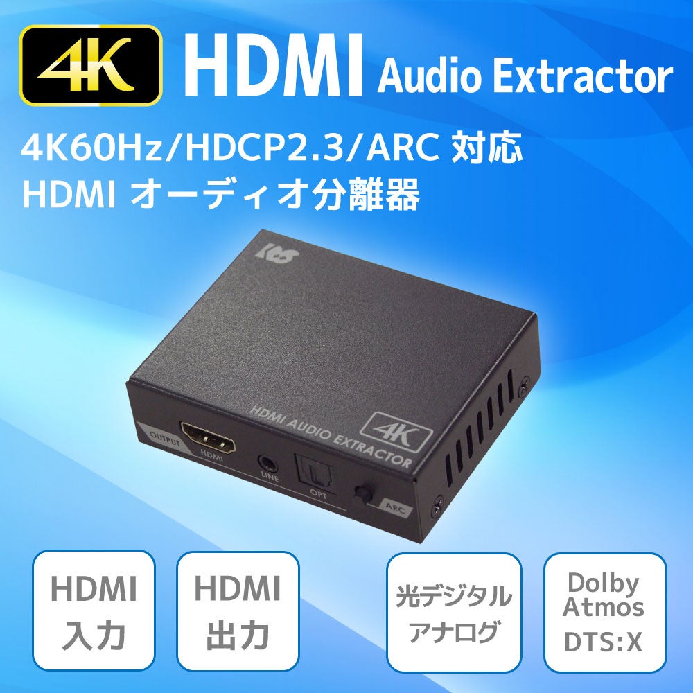 ●4K60Hz/HDCP2.3/ARC対応HDMIオーディオ分離器 RS-HD2HDA2-4K