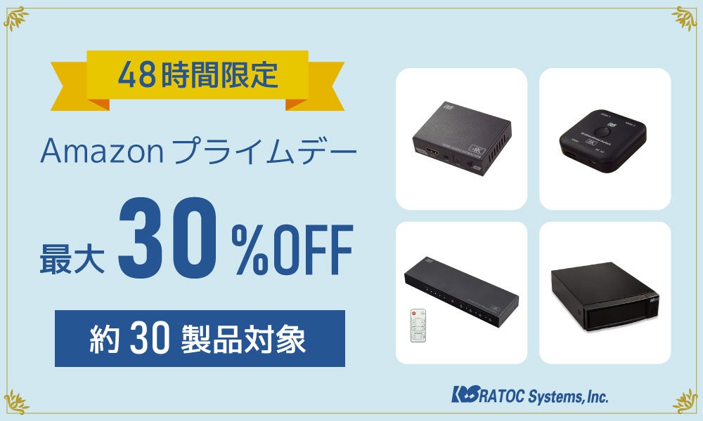 ラトックシステム株式会社(本社:大阪市西区、代表取締役:近藤 正和、以下ラトックシステム)は、「Amazonプライムデー」において、対象の35製品を最大30%OFFのセール価格で販売いたします。