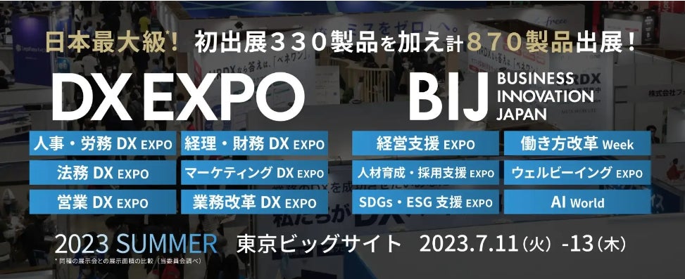 出展製品・セミナーなど展示会の最新情報はこちら :https://www.bizcrew.jp/expo/2023-dx-smr-tokyo