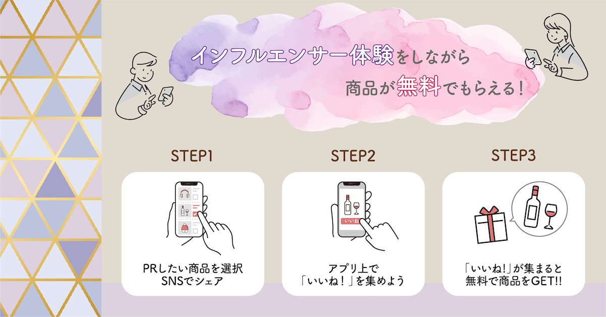 ユーザーはまるでインフルエンサーであるかのような体験を楽しみながら、商品を受取ることができます。つまり、「ぐるかい」は企業とPR活動に興味を持つユーザーを結びつけるプラットフォームであると言うことができます。