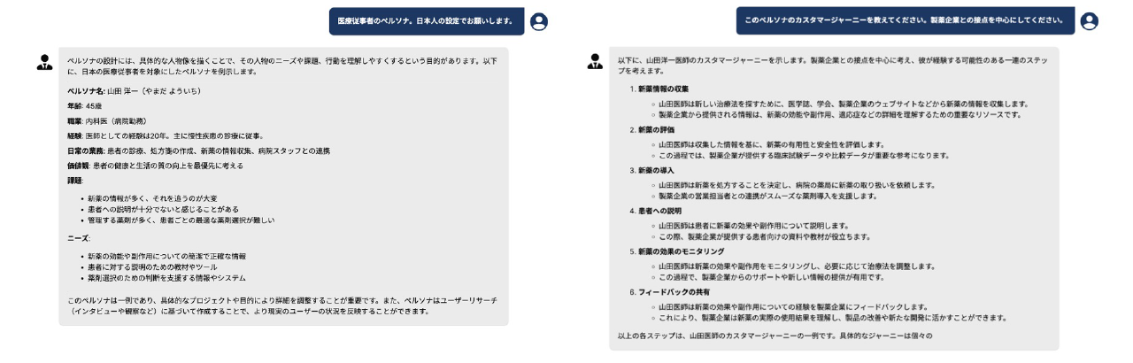 デザイン思考のプロセスにChatGPTを組み込むことで、「機会探索」ではステークホルダーや業務フロー、課題の洗い出し、問いの設定が効率的に行えるようになりました。「ソリューション検討」では幅広いアイデアの探索を可能にし、従来では思いもつかないような選択肢を得られるようになりました。またアイデア評価においては、ChatGPTを活用することで属人性を排除し、客観的で公正な評価が可能となります。