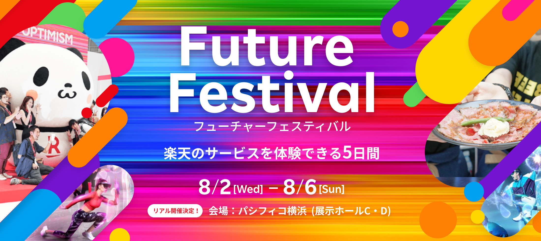 本イベントは、「楽天エコシステム(経済圏)」の概念とサービスへの理解促進を図るとともに、多くの方に新たな発見のきっかけとなる場を提供することを目的としています。今年は2019年以来4年ぶりにリアル形式での実施となり、一般来場者が無料で楽しめるコンテンツをご用意します。国内外の多種多様な業界リーダーが集結するビジネスカンファレンスのほか、AIやVR・ARなどの最新テクノロジーと楽天エコシステムを体感できる「フューチャーフェスティバル」を実施します(注1)。