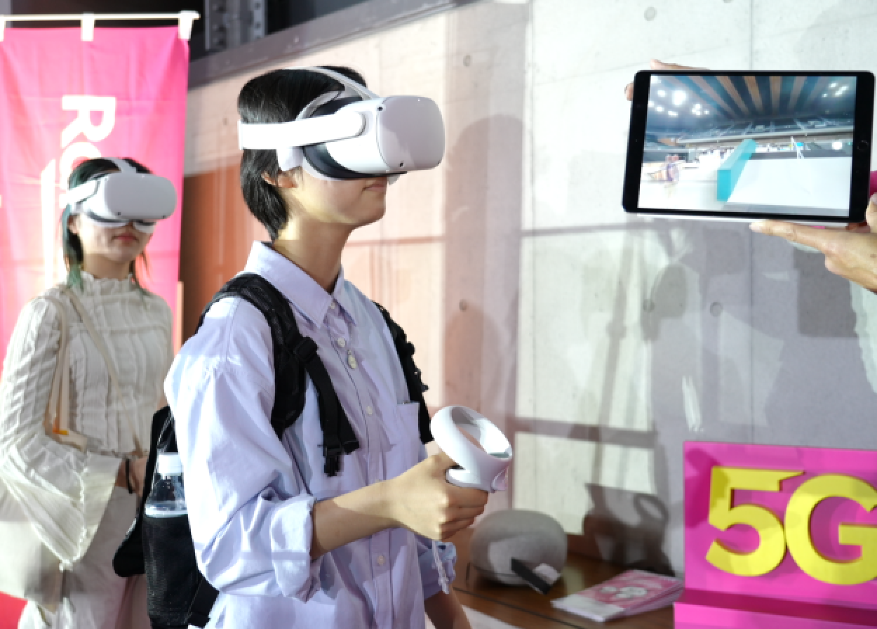 「楽天モバイル」ブースでは、これまでに実施した5G通信を活用した実証実験等に関するコンテンツ提供を行います。「ARで体験するSUPER FORMULAレース」では、レーシングシミュレーターを使用し、レーシングドライバー・野尻 智紀選手の「SUPER FORMULA」における実際の走行データと対戦することができます。また、専用スマホアプリを通じてARで再現された「鈴鹿サーキット」では、この対戦の様子をリアルタイムに観戦することが可能です。さらに、「選手目線であのスポーツエリアにワープ!4K360度のリアル映像体験」では、スケートボードやパラサイクリングなど様々なスポーツ競技で活躍する選手の目線を撮影したリアル映像を、VRゴーグルを通じて見ることで、トップアスリートの競技中の動作を疑似体験できます。