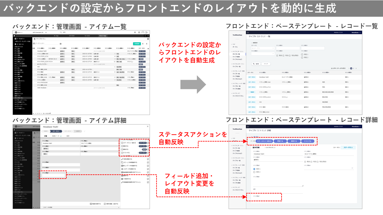 本ベーステンプレートは、株式会社アスネット(代表取締役:阿部一尋、所在地:東京都新宿区、以下アスネット)が開発したものです。DX(デジタルトランスフォーメーション)や新規事業開発に多くの企業が取り組むなか、バックエンドの管理画面で設定した内容をフロントエンドアプリのレイアウトに自動反映できるベーステンプレートは、業務システムのフロントエンド開発のスピードアップに効果を発揮します。