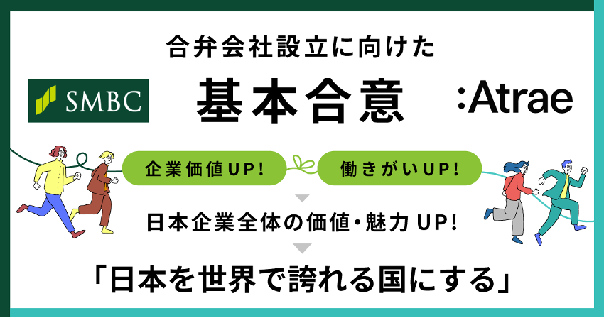 今後、SMBCグループとアトラエは両社の熱量とリソースを掛け合わせ、全てのヒトが活き活きと働き、企業価値向上にも繋がるような世界観を実現すべく、合弁会社設立を検討してまいります。