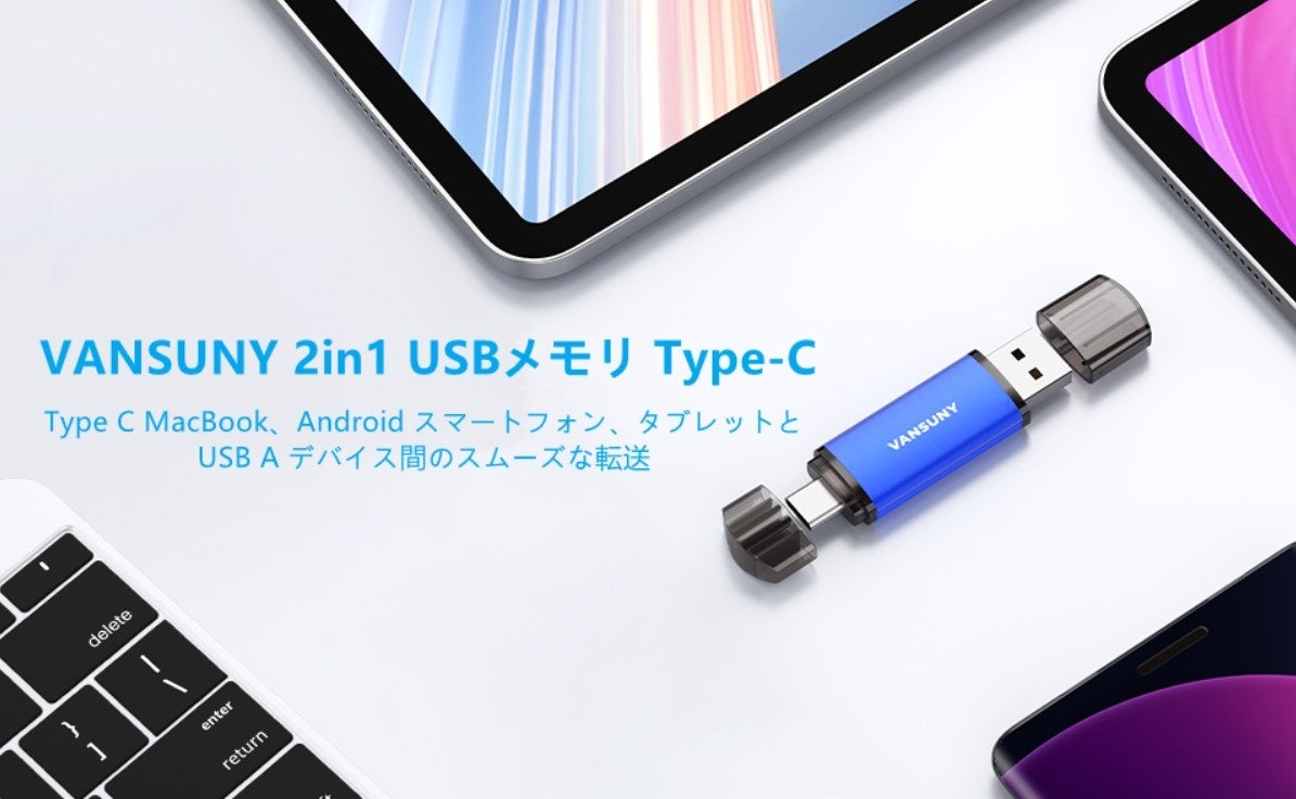 VANSUNY USBメモリ Type C 64GB USBフラッシュドライブ 2in1 OTG USB 2.0 + USB Cメモリ タイプC 64ギガ (青)