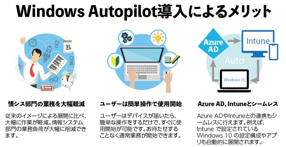 Microsoftが提供するWindows Autopilotは、Windows 10の初期セットアップをクラウド経由で自動的に各々の環境に適した状態にするツールです。