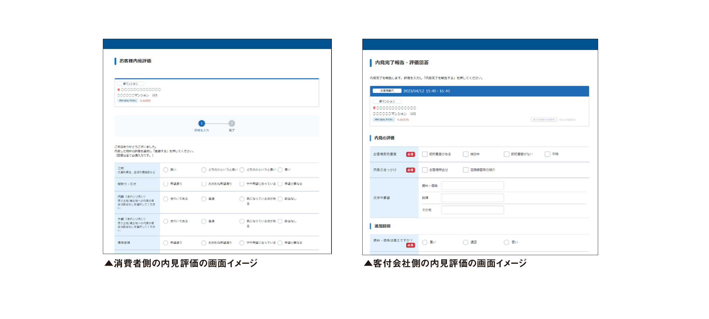 消費者と客付会社からの内見評価、これまでの内見予約受付の実績を確認できるため、物件の品質向上に生かせ ます。