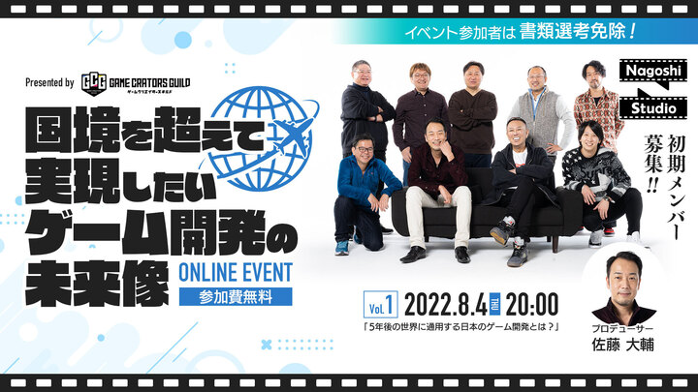なお採用直結型のイベントとして、希望者には名越スタジオの書類選考が免除されます。スタジオ立ち上げメンバーとして、プログラマ・アーティスト・プランナーなど、各種ポジションを積極採用中ですので、名越スタジオへの参画にご興味をお持ちの方はぜひご参加ください。
