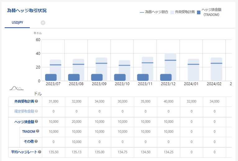④ ヘッジ済み内訳金額をトレーダムヘッジとその他のヘッジで区別可能
