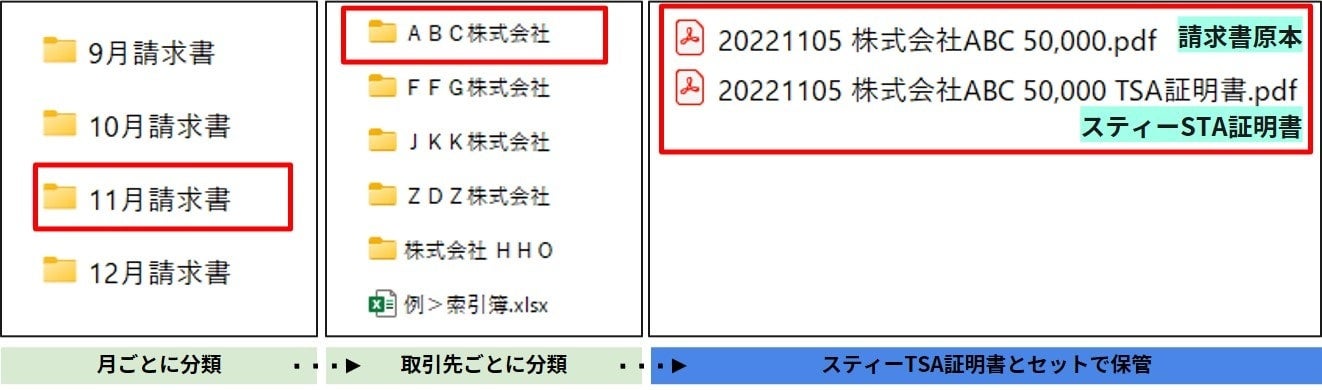 ※タイムスタンプ証明書と原本ファイルを一緒に保存しておくことで、電子帳簿保存法に対応することができます。