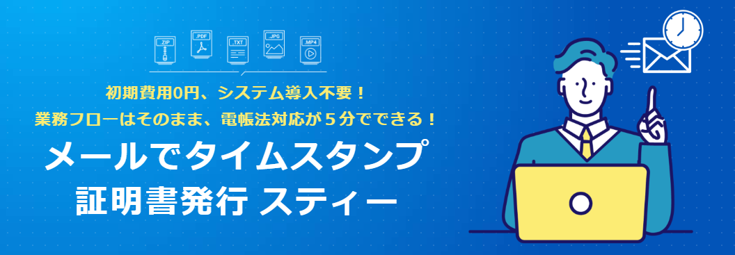 スティータイムスタンプサービスはタイムスタンプ証明書をメールで発行するサービスです。
