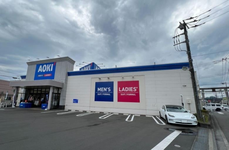 全国497店舗の大手スーツ専門店AOKIは、不要になったスーツなどのウール衣料を回収し、様々なリサイクル製品に再生・再利用する「AOKIウール・エコ・サイクル®」プロジェクトを1996年に日本で最初に始動させ、25年以上継続しています。また、CO2排出量削減や環境負荷の少ない商品づくりを推進するなどSDGsに積極的に取り組んできました。今後の課題として、環境に配慮した店舗設計・リニューアルの実施やサプライチェーンの構築を掲げており、その一環としてEV普通充電器の設置が検討されました。この度、愛知県内7店舗、神奈川県内4店舗において6kW普通充電器導入台数NO.1※のEV充電エネチェンジの導入が決定され、今後は全国の店舗に設置が拡大される予定です。先立って、AOKI横浜三ツ境店(神奈川県横浜市)とAOKI津久井城山店(神奈川県相模原市)で運用が開始され、地域のEVシフトと脱炭素社会の実現を後押ししてまいります。