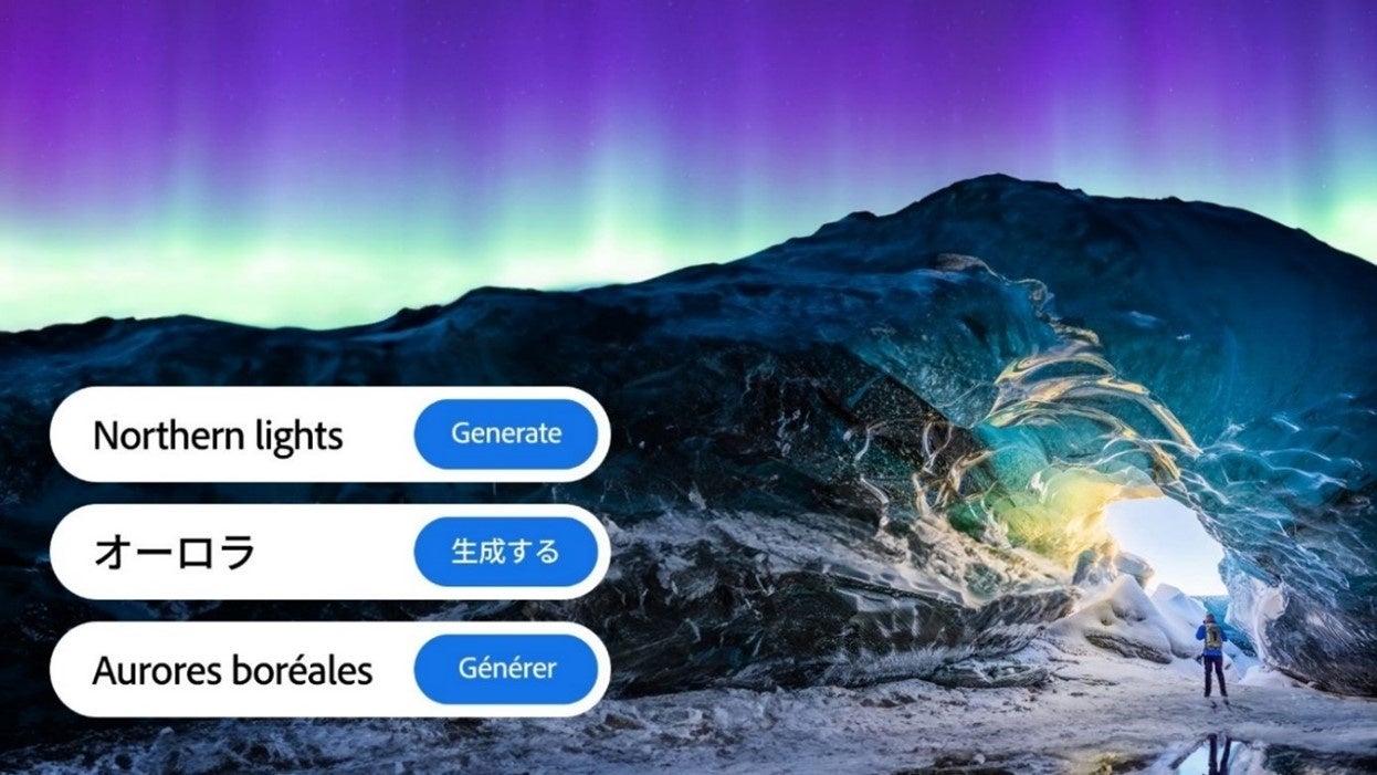 • Adobe Firefly web版のユーザーインターフェイスを20か国語以上に拡大予定:日本語をはじめフランス語、ドイツ語、スペイン語、ブラジルポルトガル語、ポルトガル語バージョンは本日より提供を開始