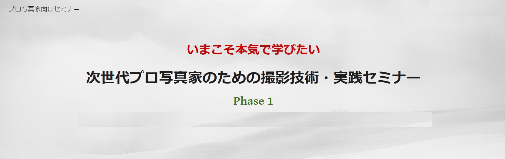 そこで写真撮影を生業とする、主に次世代のプロ写真家を対象に、撮影に関する技術的な知識およびテクニック等を学んでいただく機会を設けました。なお、知識の研鑽を目的とされるプロ写真家であれば年齢・経験歴に制限はございません。奮ってご参加ください。