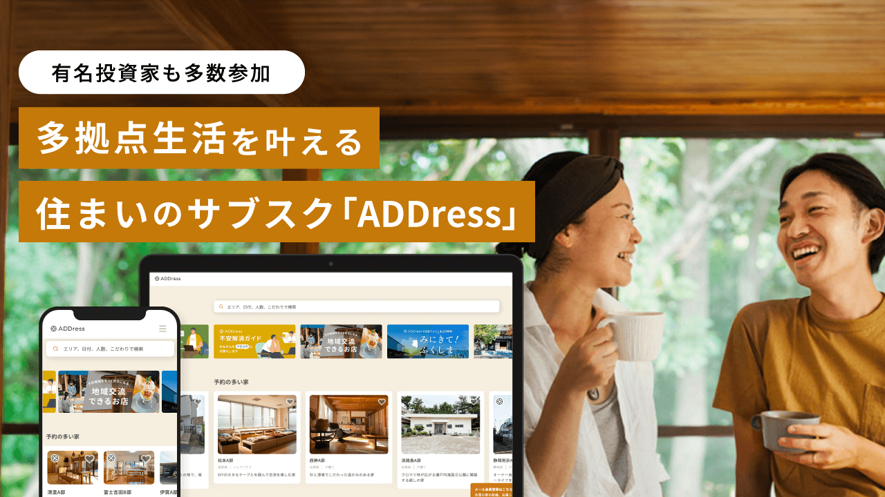 有名投資家も多数参加。全国270か所以上の家で多拠点生活を叶える住まいのサブスク「ADDress」