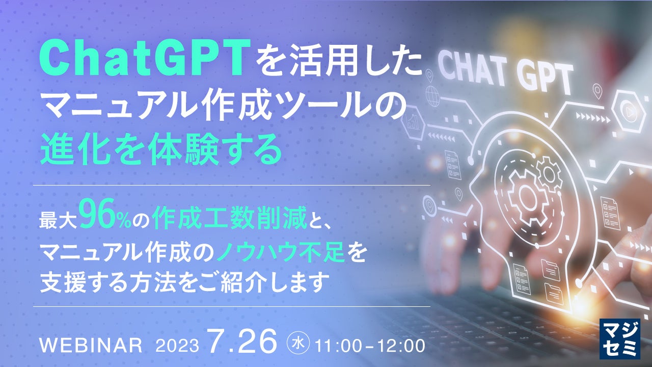 演題:ChatGPTを活用した、マニュアル作成ツールの進化を体験する〜最大96%の作成工数削減と、マニュアル作成のノウハウ不足を支援する方法をご紹介します~