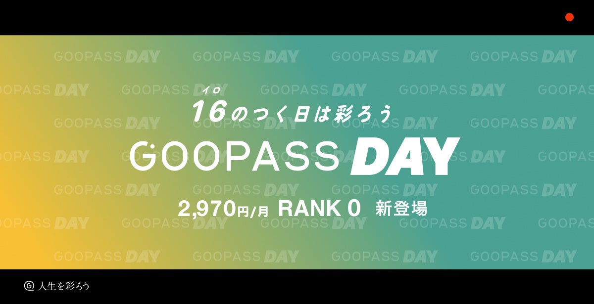 「16(イロ)のつく日は彩ろう」をテーマとし、毎月16日を『GOOPASS DAY』に、人生を彩るきっかけ作りとなるお得な企画やユーザー参加型で一緒に楽しんでいただける機会をご提供しています。7月のGOOPASS DAYもぜひお楽しみください。