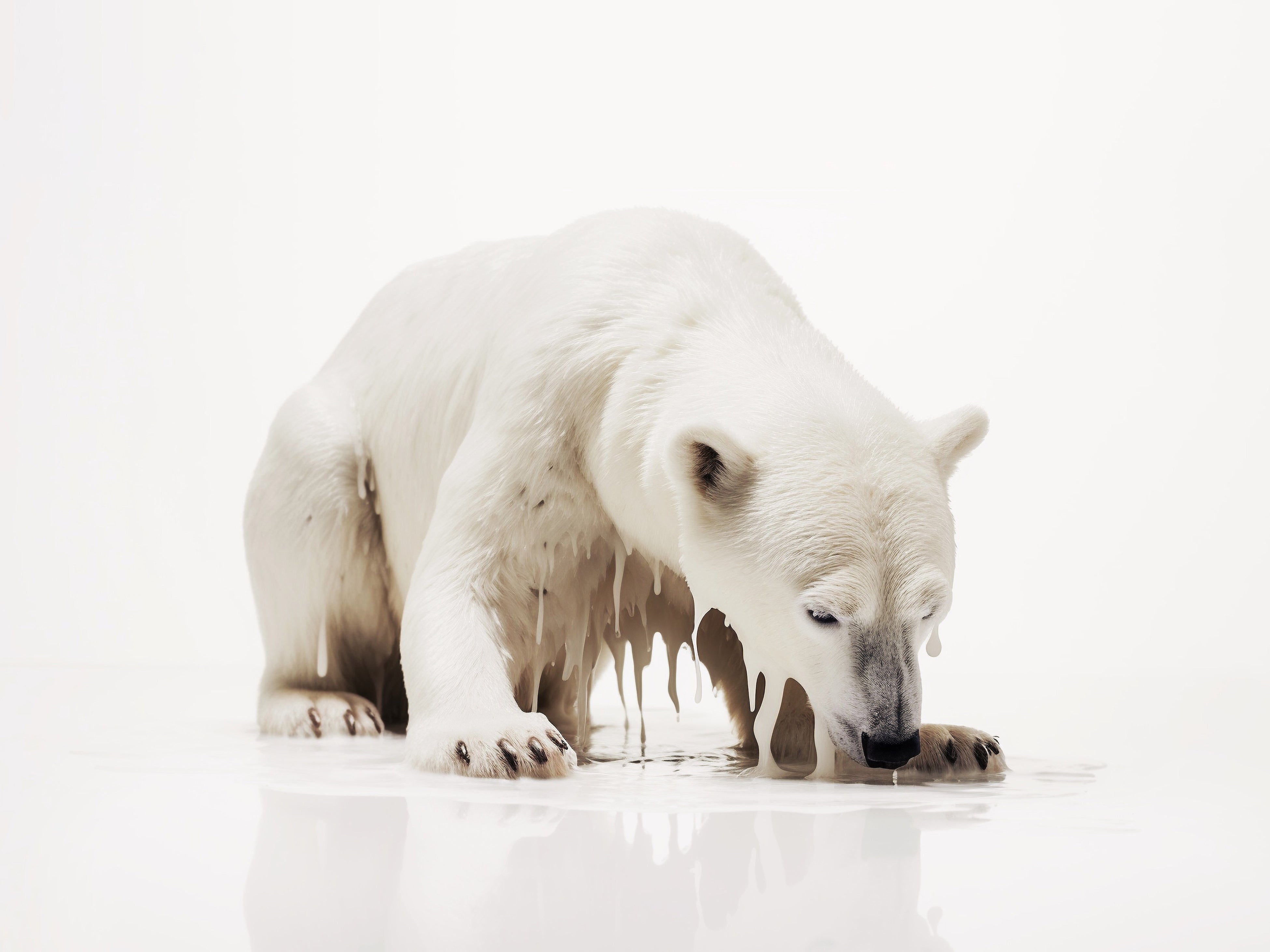 国際連合気候変動政府間パネル(IPCC)によると、世界の平均気温が産業革命以前の水準から2°C上昇すると、深刻な環境への影響が生じる可能性があるとされています。温暖化による2°Cの上昇は、生態系全体に大きな影響を及ぼします。特に北極圏や南極圏では、氷の減少が深刻な問題となり、シロクマやアザラシ、ペンギンなどの生物の生存に影響を及ぼす可能性が高いです。海氷の減少は、これらの生物の生息地や食料源に影響を与え、生存と繁殖を困難にする可能性があります。 本作品は、そのようなあり得るかもしれない未来の状況を想像し制作しました。まずは知ること。リサイクルと廃棄物削減。持続可能な消費行動など。私たちだけのものではないこの美しい自然や生態系が、このイメージのように取り返しのつかないことになってしまう前に。私たちもできることから。