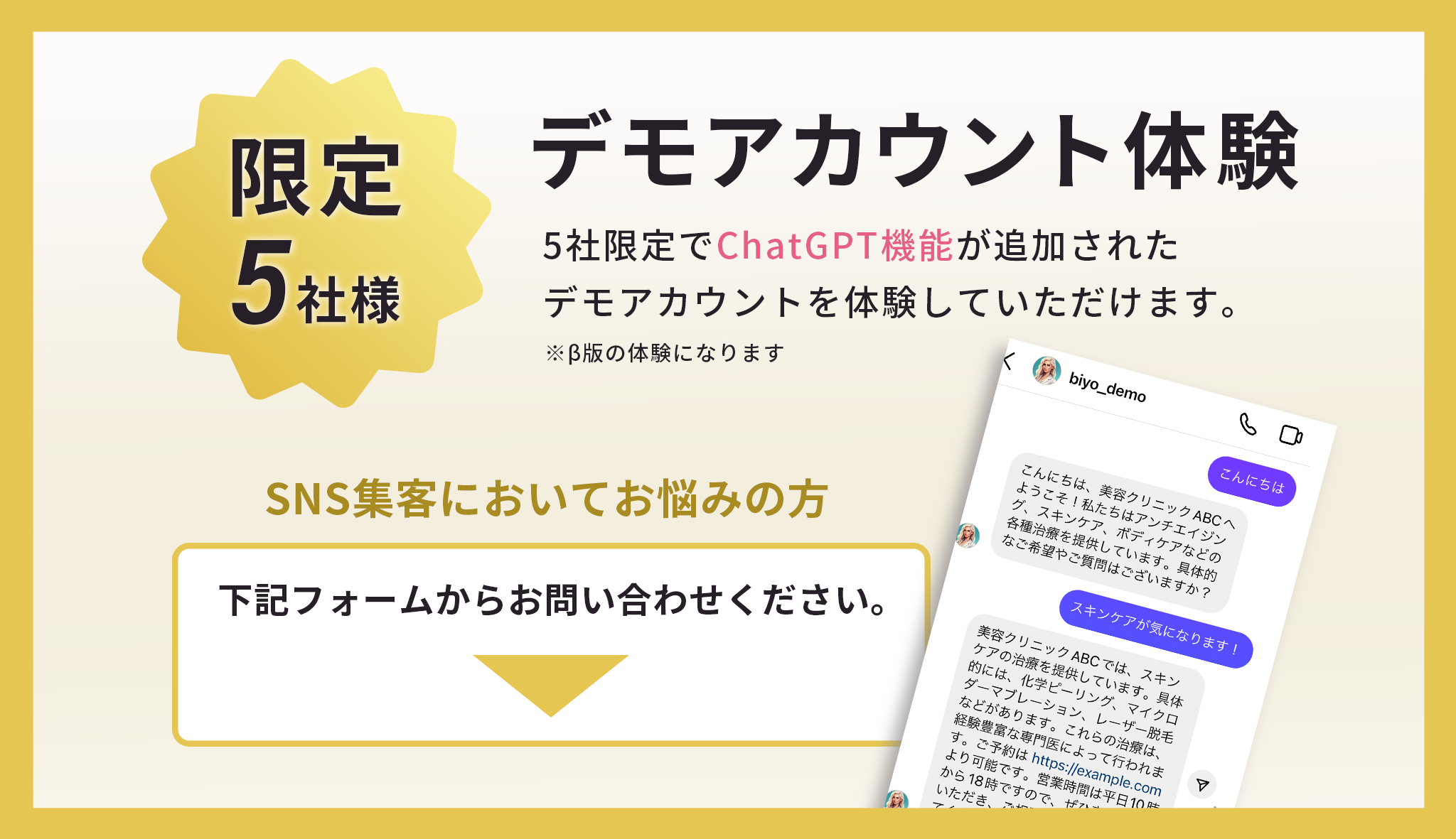 5社限定でChatGPT機能が追加されたデモアカウントをモニター体験していただけます。
