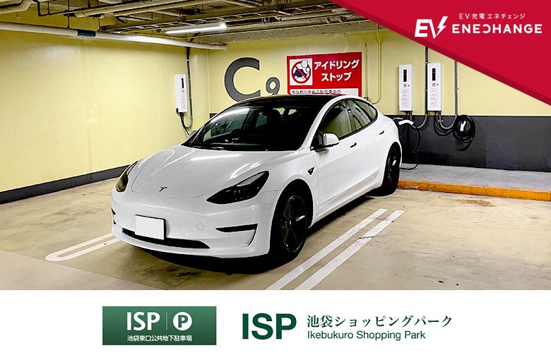 ISP・池袋東口公共地下駐車場はJR・東京メトロ池袋東口直結で、24時間176台収容可能として駅利用者や買い物客に利用されています。駐車場を運営するISPは、「ゼロカーボンシティ」を目指す豊島区と連携を図りSDGsにも多方面から取り組む中で、2021年11月からは施設の消費電力を再生可能エネルギーに切り替え、CO2排出量の0%を達成しています。また、新たにEV充電設備の導入が決まり、充電時間に縛られずに池袋駅周辺エリアの滞在を楽しめるとして、6kWの出力でより利便性の高いEV充電エネチェンジが採択されました。EV充電設備の電力も再生可能エネルギーが使用されます。また、都心のスペースの限られた駐車場内での車と充電器の接触事故の発生を考慮し、場所を取らずに設置可能な壁掛けタイプが採用されました。