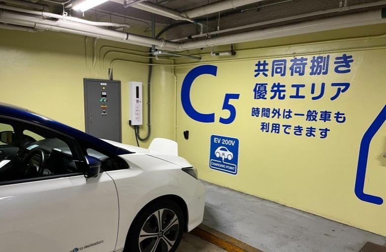 ISP・池袋東口公共地下駐車場では、地上における歩行者の安全と物流の両立を図るため、集荷・配送や荷捌き場を必要としている集配業者を対象に、平日の午前中、駐車場の一部を共同荷捌きスペースとしています。この度導入された5基のEV充電器うち2基は「共同荷捌き優先エリア」に設置され、今後物流業界で進むEVシフトにも対応しています。「共同荷捌き優先エリア」においては平日午前を除いて一般のEVも駐車・充電することが可能です。