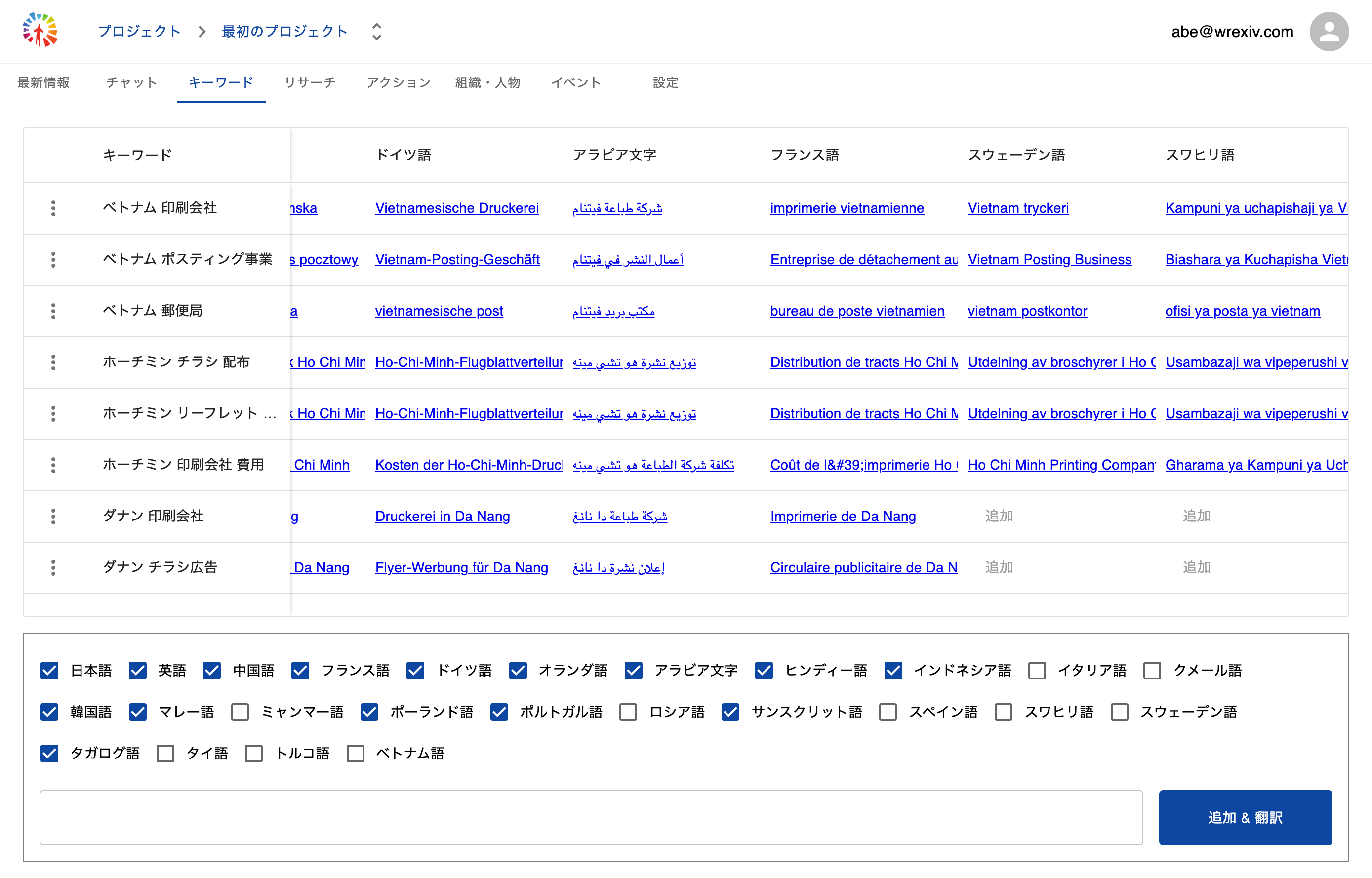 さらには事業概要からさまざまな言語にキーワードをマッピングし、ローカル言語で情報を検索、翻訳と要約を自動ですることできます。