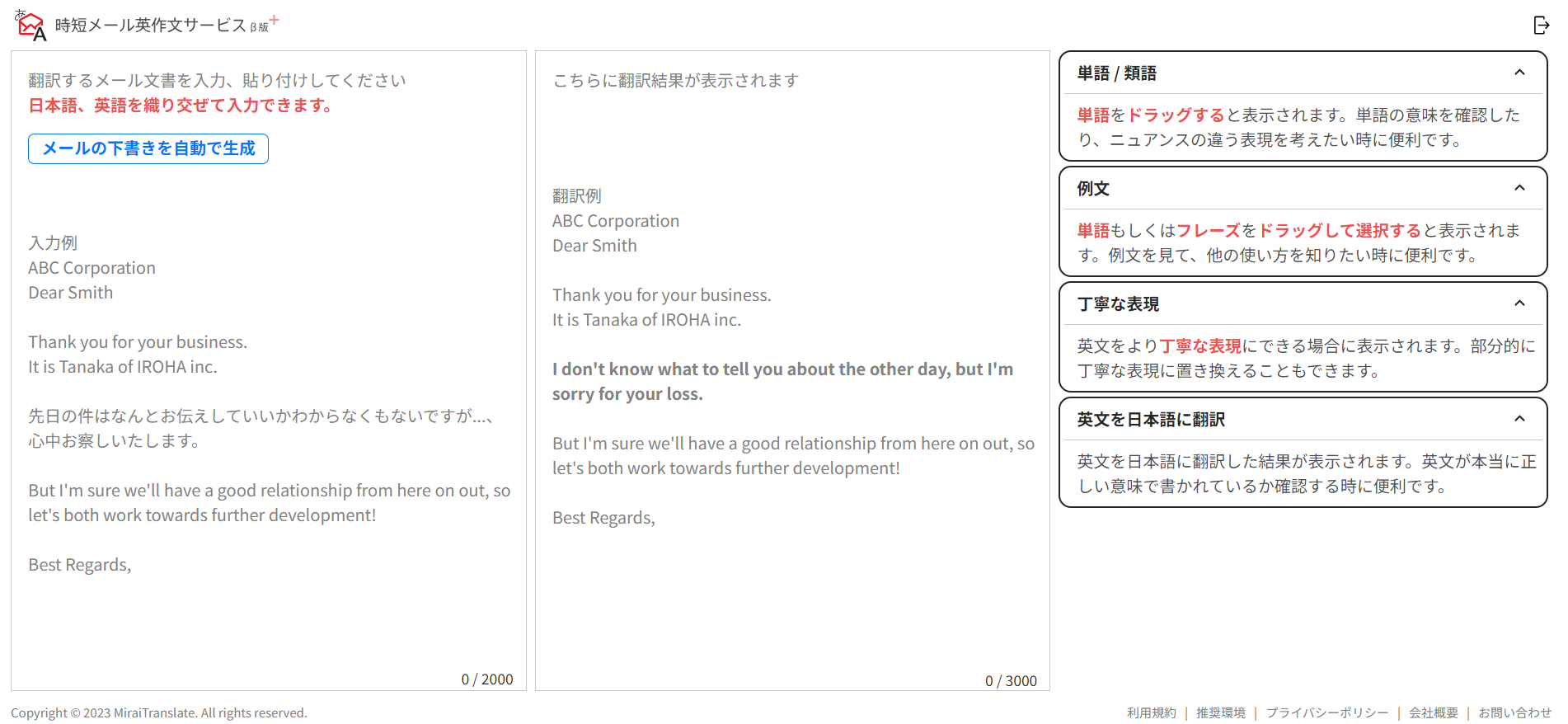 ※「時短メール英作文サービス β版+」は、簡単なユーザー登録でどなたでも無償でご利用いただけます。