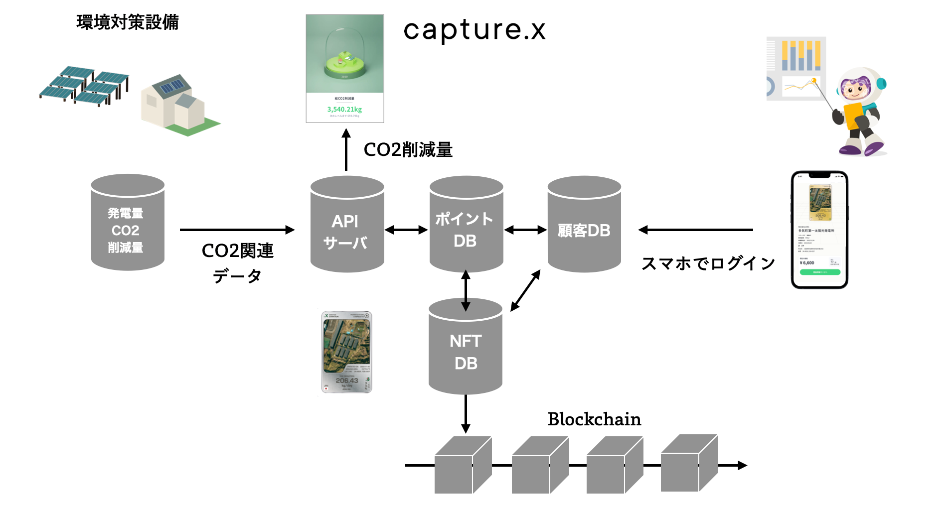 ・上記サービスモデルを実現するため、ブロックチェーン(マルチチェーン)上のNFTとして、環境対策設備およびプロジェクトを保存し、プロダクトを実装した点