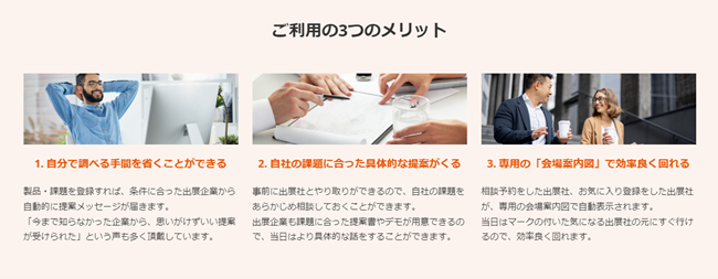 「出展製品が多くて、最適なものが見つからない」「課題に対する的確な提案が欲しい」といった方におすすめのサービスですので、ぜひ会場へお越しの際は、こちらもご活用ください。