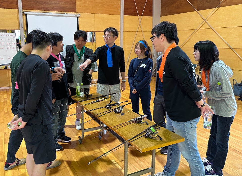 (写真:心を一つに、目指すは大物。タックルセッティングリレー)